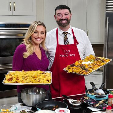 My visits to Great Day have always been a highlight for me! The staff and crew have enjoyed many different versions of my nacho fusion. Last month, I got a suggestion from Executive Producer Caitlin Amato and News Anchor/Reporter Caitlin Francis. With summer quickly approaching, what’s the next big nacho mashup? Say hello to Caitlin’s Cheeseburger Nachos! Great for leftovers from your BBQ’s and you’ll likely have all the ingredients you need already in your fridge! Let’s get this summer party started with a Cheeseburger Nachos Cheers!